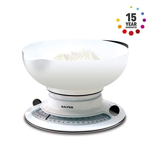 Salter 800 WHBKDR Analoge Küchenwaage mit 2,6L Wägeschale, Hinzufügen und Wiegen einer drehbaren Doppelscheibe für max…