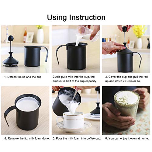 Dieser Milchaufschäumer nicht mehr da Edelstahl mit Antihaftbeschichtung ist langlebig, rostbeständig und leicht zu reinigen.Es hat ein zweilagiges Netz, ziehen Sie die Stange auf und ab, um Milch für die Kaffeedekoration aufzuschäumen.Angebracht für den Heimgebrauch und den gewerblichen Gebrauch.