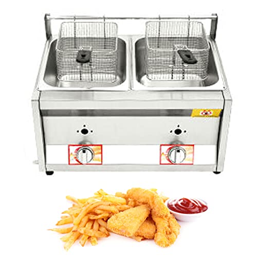 sjdoPulse Gas-Fritteuse mit Körben, Edelstahl, kommerzielle Fritteuse mit Temperaturkontrolle, für Truthahn, Pommes Frites, Donuts