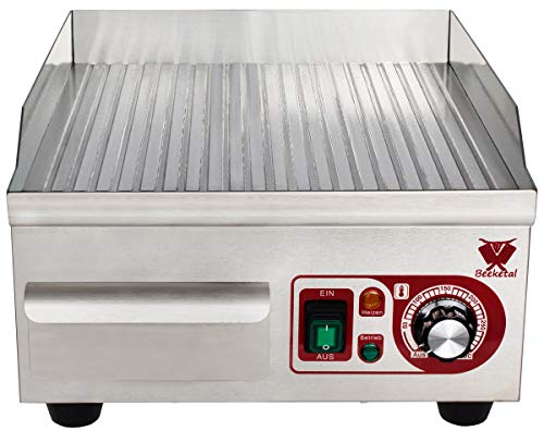 Abnehmbarer Spritzschutz alle Edelstahl, 2 Spachtel zum Umwenden des Grillguts, Stufenlose Temperaturregler mit Hilfe von Leuchtanzeige, 2200 Watt
