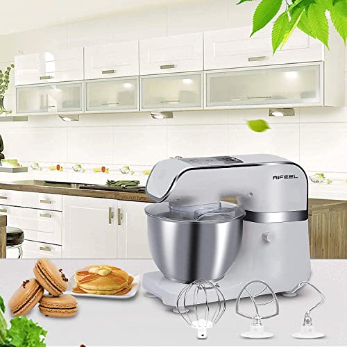 Kompakte Größe mit 4,5 l Schüssel: Die 4,5 l Edelstahlschüssel ermöglicht es Ihnen, 800 g Mehl in einer einzigen Charge zu mischen; kompakte Größe (34,8 x 19,1 x 30,2 cm), dekorieren Sie Ihre Küche, ohne im Überfluss Platz zu abverlangen. Alle Aifeel Standmixer werden mit Knethaken, flachem Schlägel und Schneebesen geliefert. Weit verbreitet für die Herstellung von Kuchen, Brot, Keksen, Gebäck, Muffins, Waffeln und so weiter.