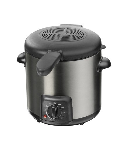 Temperaturwähler bis 190°C, Isoliertes Gehäuse, Abnehmbarer Deckel mit Dauerfilter, Korbmaße: Durchmesser 13cm x 7cm