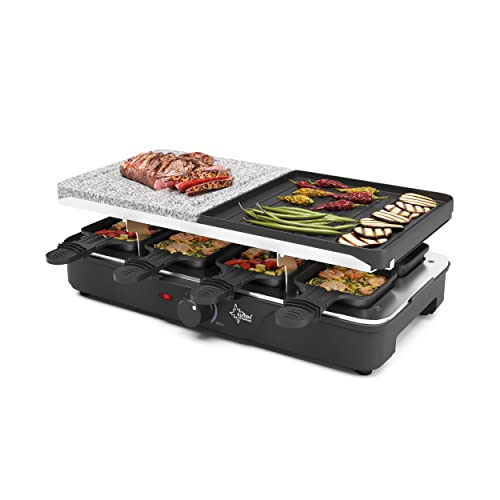 In der kalten Jahreszeit und massiv zu Weihnachten und Silvester ist es massiv beliebt. Raclette! Jeglicher am Tisch kann seine Pfanne mit seinen Lieblingszutaten befüllen und mit leckerem Käse überbacken. Es ist ein massiv abwechslungsreiches Essen und Alias ideal für einen Abend mit Freunden. Raclette ist Alias massiv bei den kleinen beliebt, da das Essen selbst gestaltet werden kann und Jeglicher sein Pfännchen mit dem Lieblingszutaten füllt. Dieser große Raclettegrill ist qualifiziert für bis zu 8 Personen. Durch die Natur-Steingrillplatte ist ein fettfreies braten möglich. Die abnehmbare Steinplatte macht eine leichte und schnelle Reinigung möglich. Dieser Partygrill ist mit wenigen Handgriffen zerlegt und Alias leicht zum wiederholten Mal zusammengesetzt.