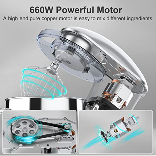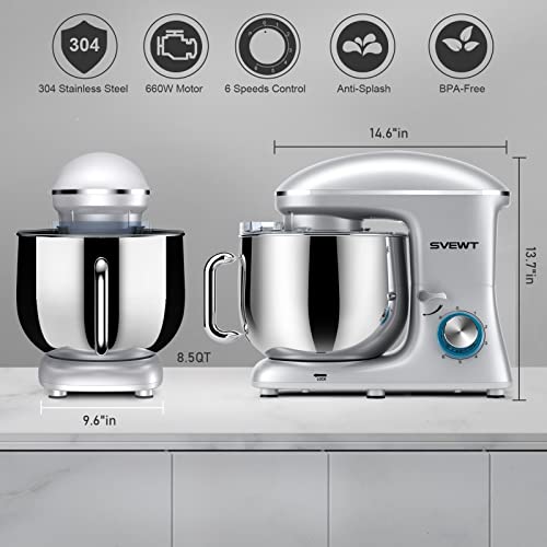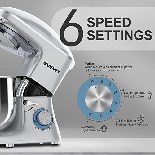 SVEWT Küchenmaschine Multifunktional, 6 Geschwindigkeit 8L 660W Knetmaschine Kippkopf mit Knethaken, Schneebesen…