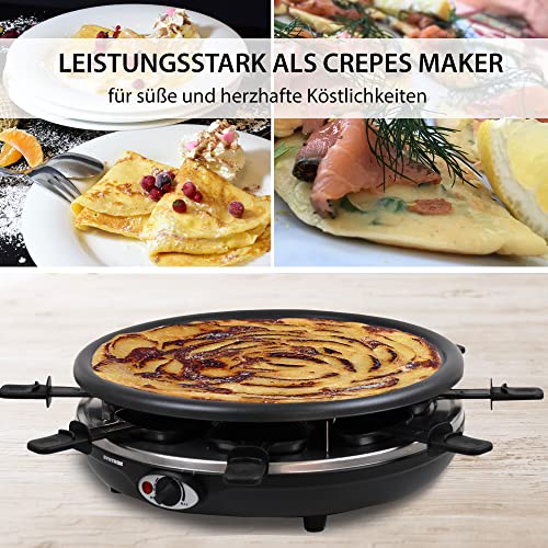 Syntrox Germany RAC-1350WF Waadt 4 in 1 Raclette Grill Fondue Heißer Stein für 8 Personen, Edelstahl Design