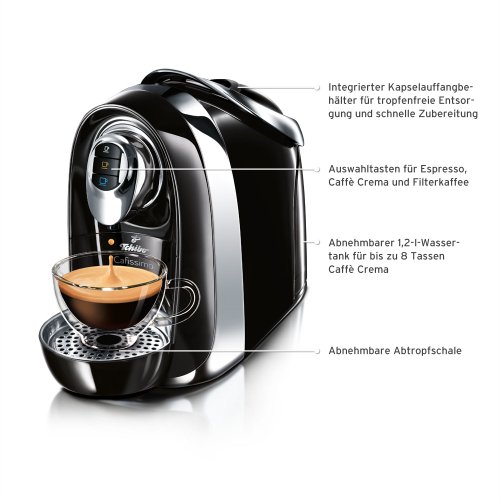 Taverne programmierbare Getränkemenge, integrierter Kapselauffangbehälter zugunsten solange bis zu 8 Kapseln ansonsten abnehmbarer 1,2 Liter Wassertank