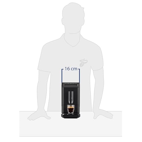 SCHNELLE REINIGUNG: Das automatische Entkalkungsprogramm und die entnehmbare Brühgruppe hervorbringen den Vollautomaten einfach zu pflegen und langlebig. Der schlichte QR-Code am Bohnenbehälter bietet schnellen Abruf zum Service