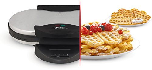 Tefal Doppel-Herzwaffeleisen WM311D, Stufenloser Temperaturregler für Bräunung nach Wunsch, Antihaftbeschichtete Platten, Teigauffang-Vorrichtung, 1200W, 37 x 11.4 x 28.5 cm