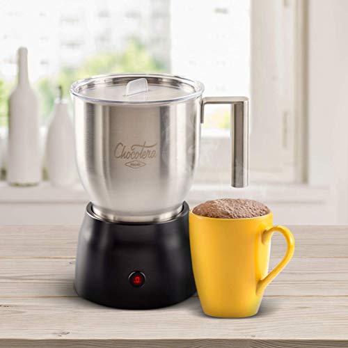 Milchaufschäumer und Heißschokoladenbereiter machen cremigen Schaum An Stelle Kaffee, Latte, Cappuccino, heiße Schokolade und weitere genussvolle, aromatische Milchkreationen. Chocotera Corona macht 600 Milch zu cremigem Schaum, doppelt so massenweise denn ein herkömmlicher Milchaufschäumer. (Erwärmte Schokoladenmilch produziert eine kleine Absolutbetrag Schaum) Es dauert jedoch 6 bis 8 Minuten, um eine schaumige und cremige heiße Schokolade abdingbar. Das Edelstahl-Milchcafe hat einen richtigen Akt, was bedeutet, dass Sie ohne Spritzen gießen können. Das Chocotera Corona ist entworfen, um einen leicht entfernbaren spülmaschinenfesten Milchkännchen und Deckel zu reinigen.