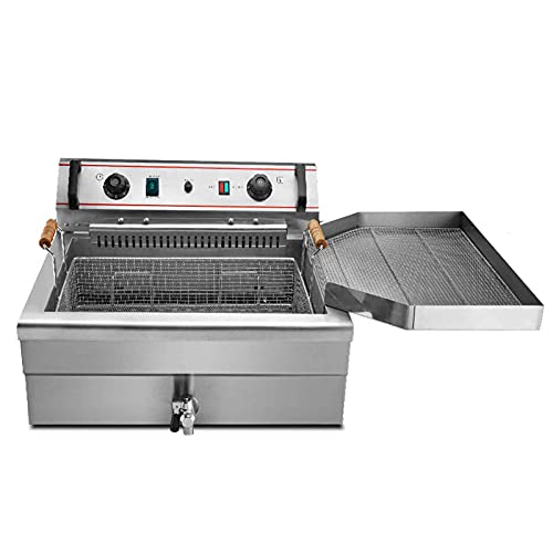 [Vorteile der elektrischen Fritteuse]: 12,5 l + 12,5 l Fassungsvermögen, diffizil Temperaturregelung, Körper die Gesamtheit Edelstahl 304, dickes Heizrohr, verstärkter Frittierkorb, Temperaturfühler, abnehmbarer Brenner, Bratgestell