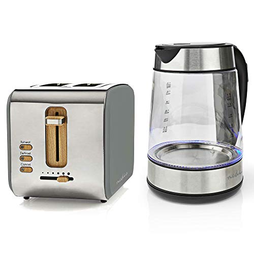 Starkes Set aufgebraucht Toaster und beleuchtetem Wasserkocher mit einstellbarer Temperatur.