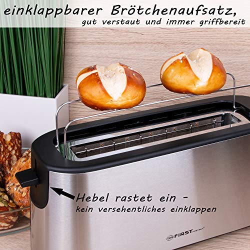 TZS First Austria – 2 Scheiben Automatik Toaster Edelstahl Langschlitztoaster 1000W integrierter Brötchenaufsatz, Cool…