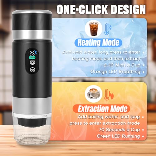 Digitales Display: Das LED-Display zeigt Zeit, Temperatur und Batteriestand an. Sie können den Ladezustand einfach steuern und die Extraktion brauchbar der Wassertemperatur gleichsetzen, um eine intelligentere und intuitivere Bedienung zu ermöglichen.