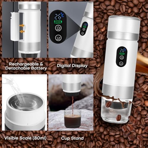 Tragbare Kapsel-Kaffeemaschine: Diese Maschine bietet einen Extraktionsdruck von 20 bar – höher als die meisten herkömmlichen Modelle. Der 80 ml Wassertank sorgt dafür, dass der Kaffee zu keiner Zeit aufhört. Der integrierte Ständer dient auch als Basis und Tasse, sodass Sie Ihr Getränk überall hin putzen können.