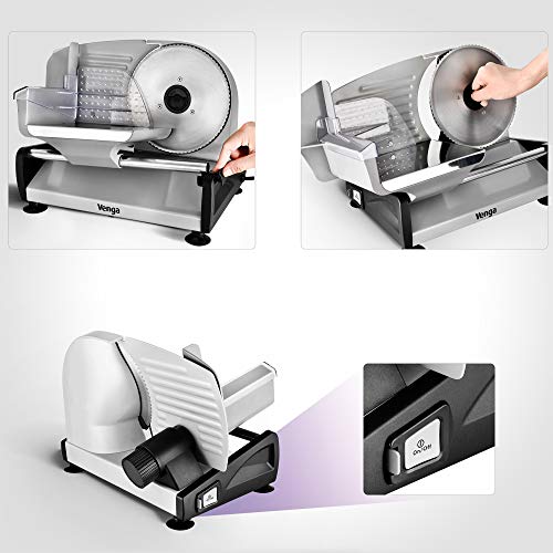 Venga! Universal Elektro-Allesschneider, Edelstahl, 2 Austauschbare Klingen, bis zu 15 mm Regelung der Schneidstärke…