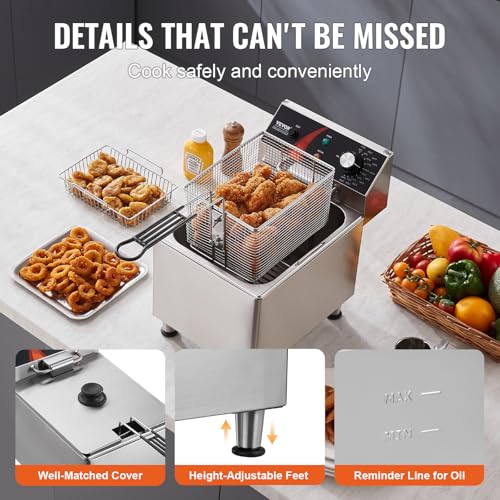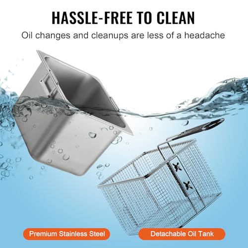 Große Kapazität: Durch die Verwendung eines 9,5 Qt (9 L) Öltanks (Wasserkapazität: max. 12 Qt / 11,5 L) können Sie mit dieser kommerziellen elektrischen Fritteuse verschiedene Lebensmittel frittieren und indessen den einzigartigen Geschmack bewahren. Sie eignet sich gut für Feinkostläden, Imbissstände, Snackbars und Partys.