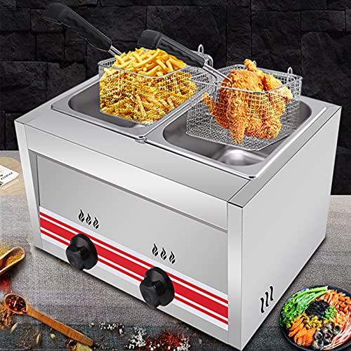 VVHUDA Gasfritteuse mit großem Fassungsvermögen, abnehmbaren Körben und Deckel, 20 l/30 l, freistehende Temperaturregelung, einstellbare Feuerkraft, kommerzielle Fritteuse aus EdelstahlF small Gift