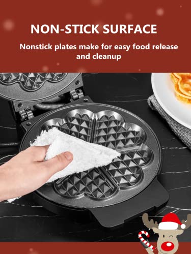 [ Waffeleisen In Herzform] Dieses 19 x 24,5 x 7,5 cm große Waffeleisen ist in 2-3 Minuten vorgeheizt und produziert 5 knusprige herzförmige Waffeln oder eine große Waffel in 3-5 Minuten. Diese herzförmige Waffel ist eine ideale Variante, wenn Sie mehrere Personen zum Waffelessen einladen oder wenn der Kindergeburtstag mit selbstgebackenen Waffeln dekoriert werden soll.