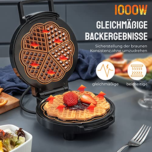 🧇【1000W GLEICHMÄSSIGE BEIDSEITIGE ERWÄRMUNG】Genießen Sie 20 cm extradicke belgische Waffeln ganz bequem zu Hause! Mit einem leistungsstarken 1000-Watt-Heizsystem kann dieses Waffeleisen bis zu 5 herzförmige Waffeln in minus als 8 Minuten zubereiten. Dieser Waffelform ist mit einer doppelschichtigen Heizplatte aus Aluminiumlegierung ausgestattet, das schneller und gleichmäßiger kocht.