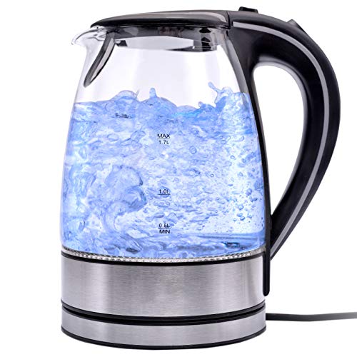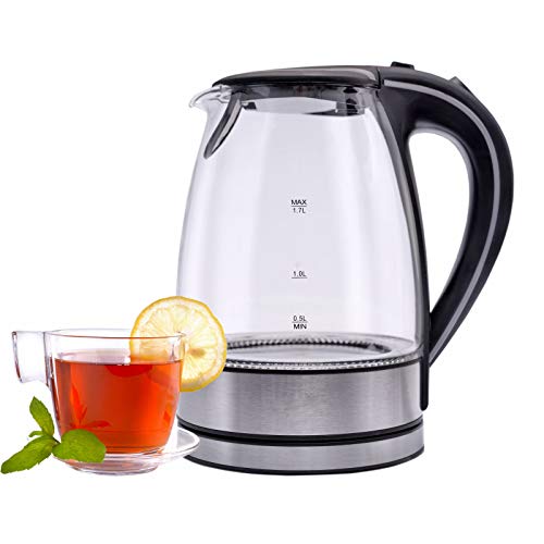 Wasserkocher GLAS 1,7 Liter 2200 Watt Teekocher Wasserkessel EDELSTAHL Campingkocher LED Beleuchtung