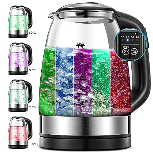 5-Abgestuft Einstellbarer Thermostatischer Wasserkocher – Von 50 bis 100 Nuance kocht und hält die Wasserkocher die perfekte Wassertemperatur, um eine gute Tasse Kaffee zu brühen oder eine Mannigfaltigkeit von Teesorten (Oolong, grün, schwarz, weiß und Kräutertee) zu genießen. Ungeachtet alledem kann er bis zu 2 Stunden lang warm gehalten werden.