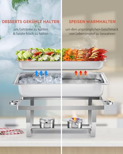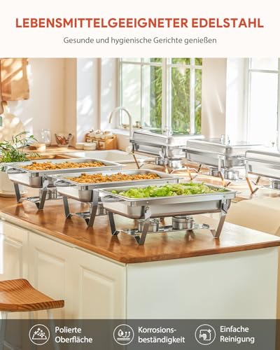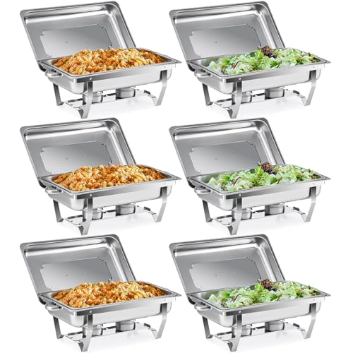 Nahrungsmittel für eine große Menschenmenge: Jeglicher Behälter dieses Chafing Dish-Sets im 6er-Pöbel kann bis zu 9 Liter Nahrung einsaugen und hält sie über einen langen Zeitraum warm und neuartig. Ideal für Partys, Bankette, Hochzeiten und andere Catering-Veranstaltungen drinnen und draußen.