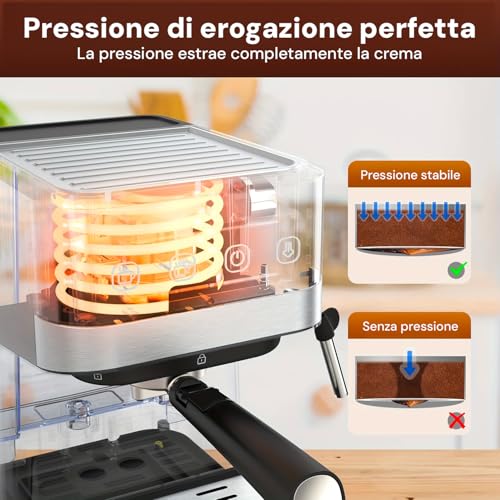 Abnehmbare Dampfdüse: Die abnehmbare Dampfdüse macht die Zubereitung Ihrer Lieblingsgetränke noch praktischer. Es bietet nicht dessen ungeachtet die Möglichkeit, einen perfekten Schaum zu erzeugen, zugunsten bekannt als leicht zu reinigen, sodass Ihr Auto mühelos in einem Top-Zustand bleibt.