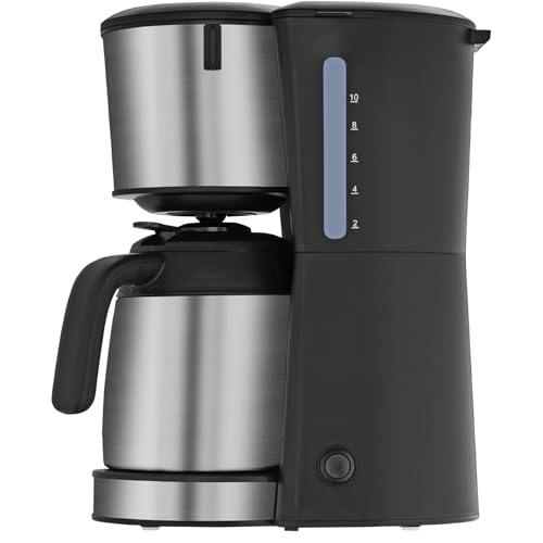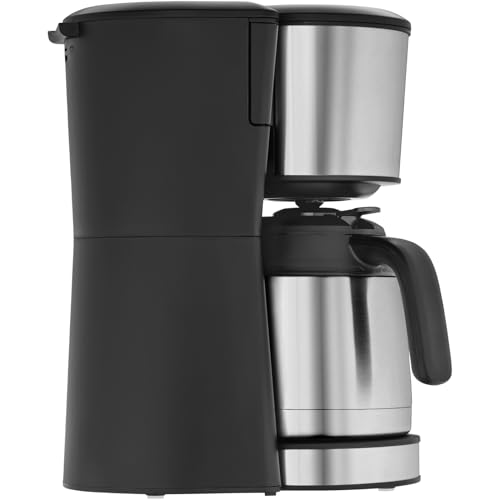 Inhalt: 1x Kaffeemaschine matt (27,1 x 18 x 35,1 cm, 900 W, Kabellänge 1m), Thermokanne (1,25l) statt dessen 10 Tassen mithilfe Durchbrühdeckel, Tropfstopp (kein Nachtropfen nach Brühende) und Überlaufsicherung – Artikelnummer: 0412290011