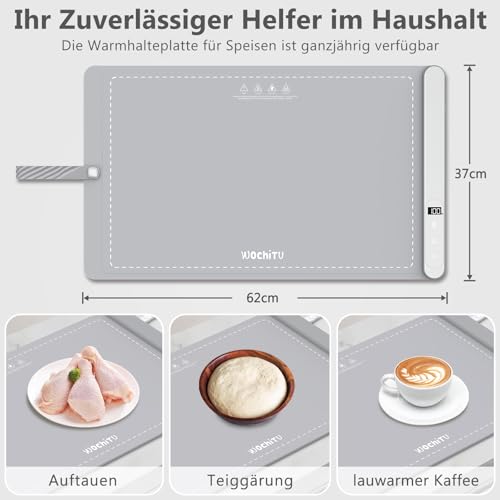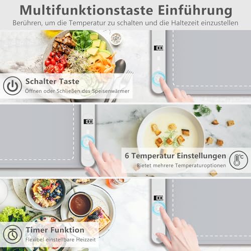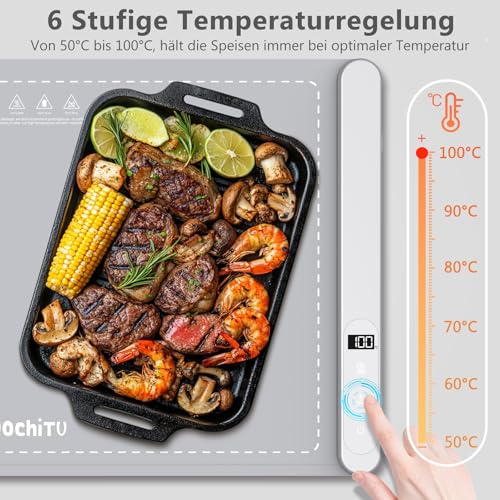 Schnelle Erwärmung über die Gesamte Oberfläche: WochiTV Warmhalteplatte dank der Graphen-Heizfolie profitieren Sie von einer schnellen und gleichmäßigen Erwärmung in einem großen Heizbereich. Unser wachsam konstruierter Heizdraht sorgt für eine schnelle und gleichmäßige Verteilung, sodass Sie Ihr Geschirr frei anordnen können. Speisenwärmer sind ideal zum Warmhalten von Speisen bei längeren Mahlzeiten oder in kalten Situationen denn Partys, Meetings und Picknicks.