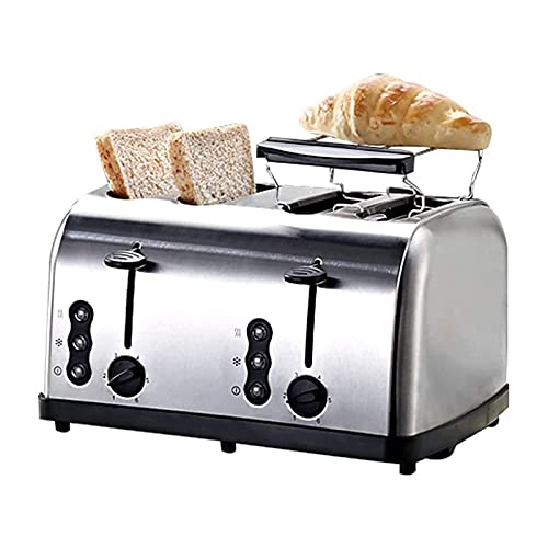 WZHZJ. 4 Scheiben Toaster, Retro Bagel Toaster Toaster mit 4 extra breiten Schlitzen, Edelstahl Toaster von