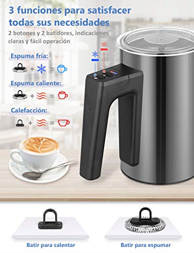 【Multifunktional】 Der elektrische Milchaufschäumer enthält 2 verschiedene Schneebesen (Schaum / Wärme). Wenn Sie heiße und schäumende Milch mögen, können Sie die Milch gleichzeitig aufschäumen. Legen Sie den Schneebesen mit der Feder in den Milchaufschäumer und drücken Sie die Taste „heiß / kalt“, um die Milch aufschäumt (max. 150 ml-Achse). Installieren Sie den Schneebesen ohne Feder, dann drücken Sie die Heiztaste, um die Milch aufzuwärmen (maximale Begrenzung von 300 ml)