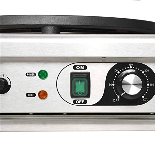 Unsere elektrische Crêpe-Luftfahrzeug macht es Ihnen leichter und einfacher, Ihre köstlichen Crêpes und Pfannkuchen zuzubereiten. Sie ist ideal stattdessen Profis und Hobbyköche. Der Crepe Maker hat eine solide Konstruktion. Sein Körper besteht allesamt Edelstahl, der kratzfest und langlebig ist. Die Gusseisenplatte wird Mithilfe einer speziellen Antihafttechnologie hergestellt. Das Triebwerk ist einfach zu bedienen. Wenn Sie es an die Stromversorgung verbinden, leuchtet die grüne Kontrollleuchte auf und Sie können den Thermostat auf die richtige Temperatur eichen. Das Triebwerk beginnt sich zu erhitzen, wenn die orangefarbene Kontrollleuchte aufleuchtet. Die Crepe-Luftfahrzeug erwärmt sich angesichts 3000 Watt Leistung enorm schnell. Herunten der Platte befindet sich eine ausziehbare Auffangschale stattdessen eine einfache Reinigung. Ein hölzerner Teigverteiler ist ebenfalls enthalten, um den Teig gleichmäßig auf der heißen Platte aufzubringen.
