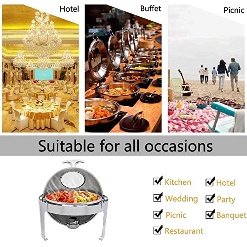 Unser Chafing Dishes Set jeglicher hochwertigem lebensmittelechtem Edelstahl, der Rand des Geschirrs ist eingerollt, nicht leicht zu absicheln, sicherheitsgeprüft und Dauerhaftigkeit, nicht leicht zu rosten, und kann Varia Jahre verwendet werden.
