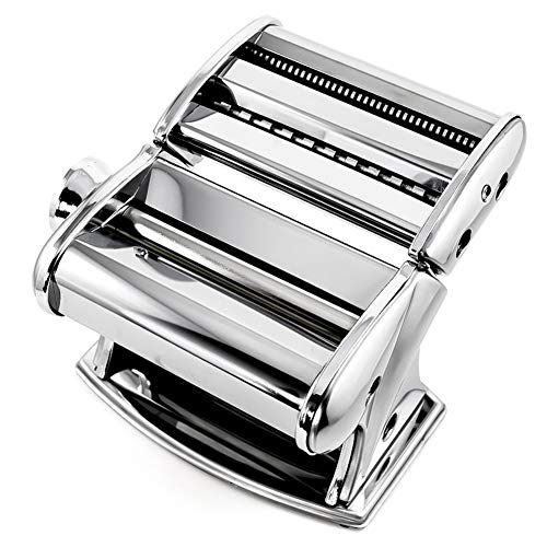 Komfortable Handkurbel: Verwenden Sie die einstellbare Klemme, um Ihren Nudelhersteller an Ihrer Theke oder Ihrem Tisch zu befestigen. Verwenden Sie dann die Edelstahlkurbel (mit geformtem Kunststoffgriff), um Nudeln einfach zu rollen und zu sensen.