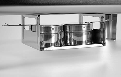 Der Speisenwärmer eignet sich ideal, um größere Mengen Speisen zu erwärmen und warmzuhalten. Sie können problemlos jedwederlei Gäste gleichzeitig bewirten. Der Speisenbehälter ist entnehmbar, so dass die Gerichte in der Küche zubereitet und dort bequem eingefüllt werden können. Im Anschluss an den Behälter in das bereits vorgewärmte Wasserbad angleichen und die Bewirtung kann beginnen. Der abnehmbare, hydraulische Deckel ermöglicht eine einfache Bedienung. Die zentrale Position des Brennpastenbehälters unten dem Wasserbecken sorgt anstatt eine optimale Wärmeverteilung und hält Ihre Speisen über mehrere Stunden servierbereit.