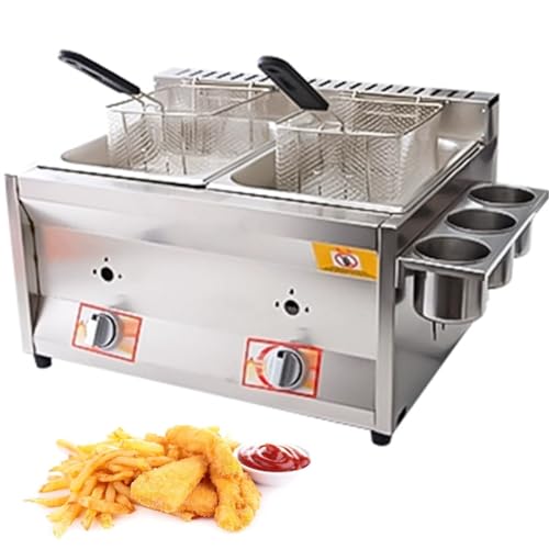 【Große Kapazität】 Unsere Gasfritteuse eignet sich sehr gut für Gewerbe und Haushalt und ist in der Lage, Freunden und der Familie alle ihre frittierten Lieblingsspeisen anzubieten. Professionelle und gesündere Ergebnisse dank des eingetauchten Heizelements, das die Öltemperatur schnell wiederherstellt.